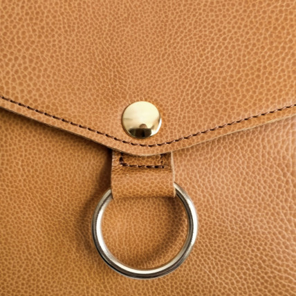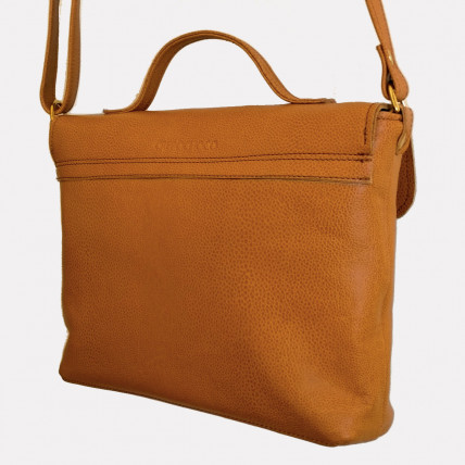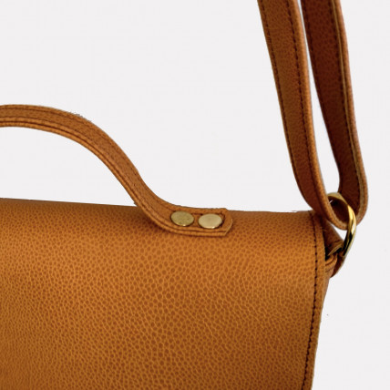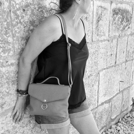 Bandoulière réglable. Fermeture avec un rabat, un bouton pression aimanté & une fermeture glissière. Accessoires en zamac finition laiton vieilli ou nickelé