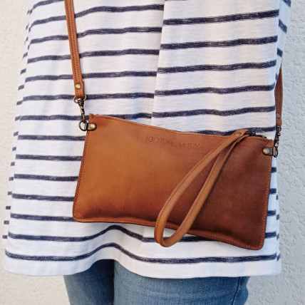 Cette pochette en cuir de créateur se porte à la main ou en bandoulière. Idéale pour toutes les saisons, de jour comme de nuit, la pochette est un accessoire pratique, dans laquelle vous pouvez y glisser tous vos indispensables. La créatrice a choisit un cuir de vache marron ciré pour un look authentique & vintage !