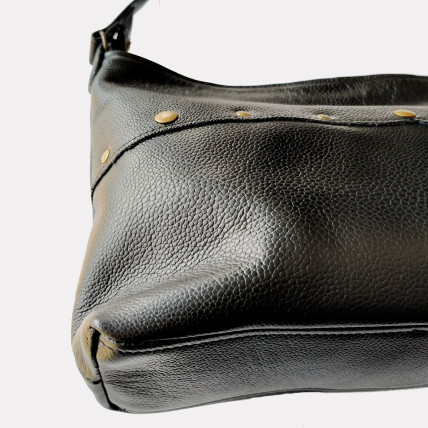 Le choix du patchwork de cuir et des rivets rend chaque pièce unique.